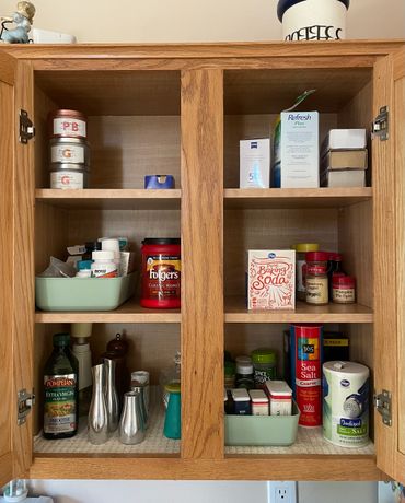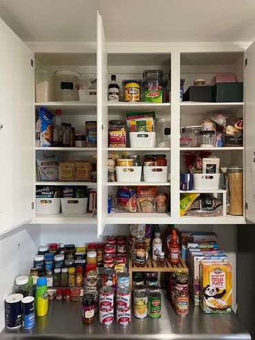 Organizing previously decluttered spaces, specifically to implement storage solutions.